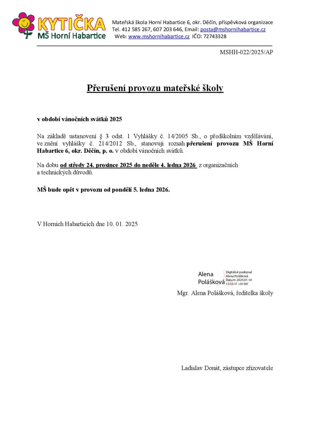 | Adresa: | MŠ Horní Habertice Horní Habartice 6 405 02 Děčín 2 |